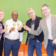 Op de foto van links naar rechts: Sasja van Lieshout, Saïd Ismail, Harm Deiman en Ralf van Overbruggen heffen het glas op de samenwerking.